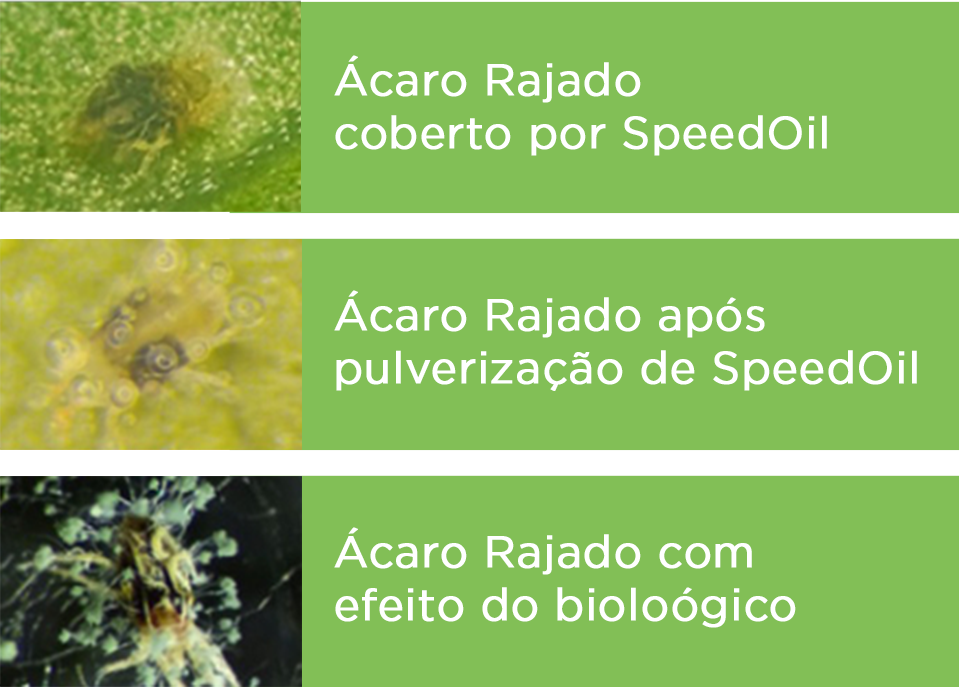 Quando os biológicos são aplicados com SpeedOil/Maxx, a performance aumenta significativamente, garantindo maior mortalidade, acelera o tempo de inicio da ação maior, mais estabilidade da calda e um ambiente ideal para a proliferação dos biológicos.